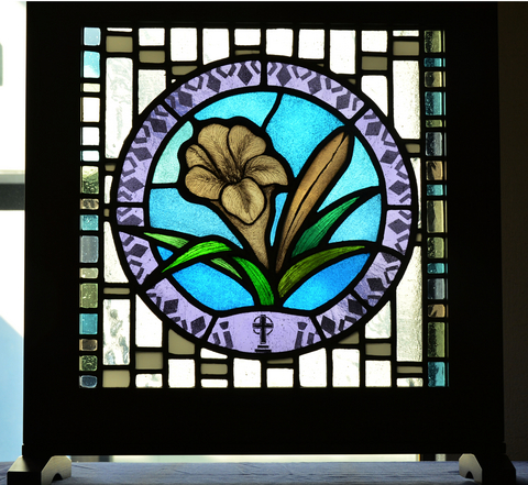 今日、ご紹介するのは、前回までご紹介していたカトリック高円寺教会のステンドグラスの一部のレプリカです。前回のブログの中央の一番下の部分です。