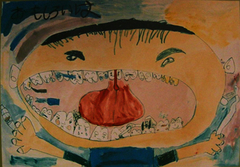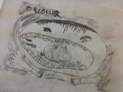 「おもしろいは」 と左上に描かれているこの絵は、息子さんが小学校2年の時に歯をテーマに描いた絵だそうです。