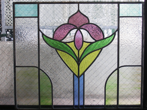 このステンドグラスパネルは、このような高窓に2枚入りました。