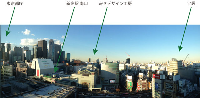 この写真は、新宿の東急ハンズのあるビルから、工房のある方向=北を向いている写真です。