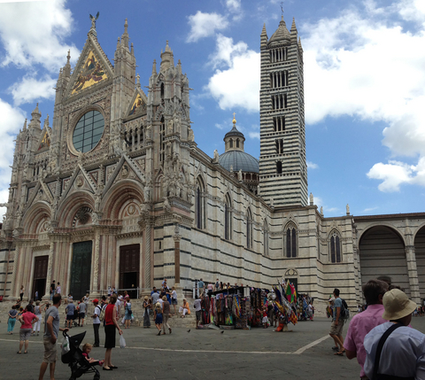 シエナ・ドゥオモは、縞模様が特徴的な、トスカーナ地方のゴシック建築の大聖堂です。
