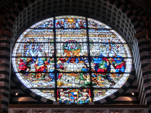 「最後の晩餐」のステンドグラスは世界各地にありますが、このシエナ・ドゥオモにもあるのです。