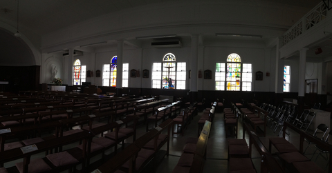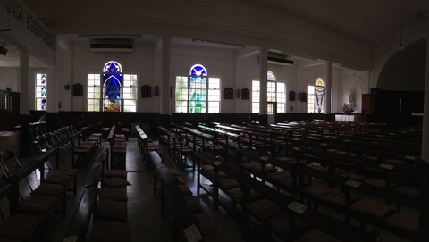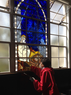 というわけで、都内の警備が厳しくなっていく中、 昨年秋に大規模補修工事をした、カトリック高円寺教会に、ステンドグラスの点検と補修工事に行ってきました。