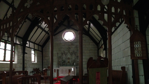 初代の教会が、「聖変容貌教会」と言う名だったことから、後陣にこの絵のステンドグラスが取り付けられたそうです。