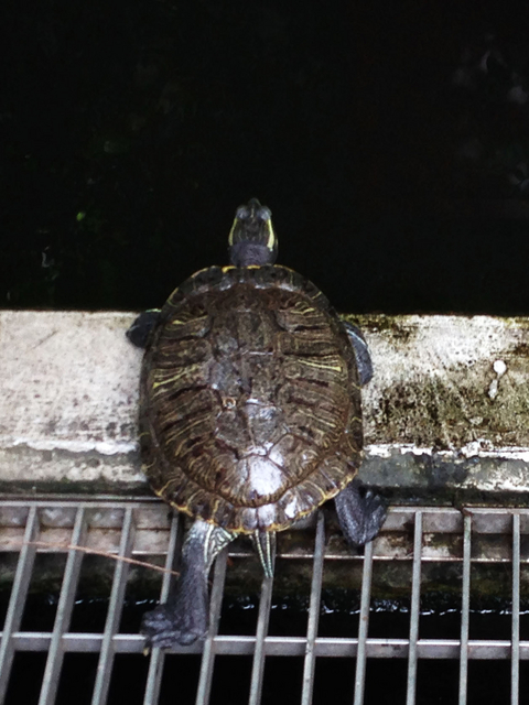 梅雨のあいだ、池の外に出ようとしているところを何度か見かけて、池に戻りなさい、と言っていたのですが…