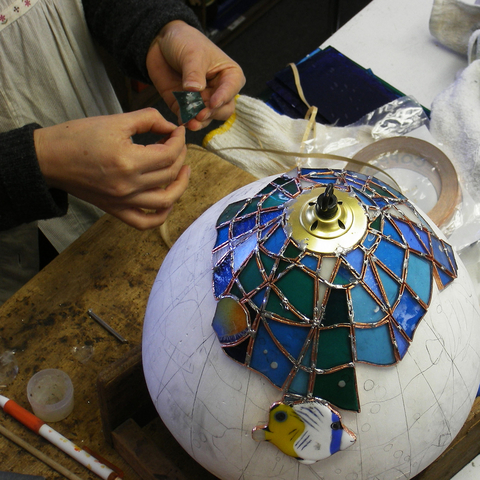 そんな、クーラーなしには過ごせない日々にピッタリのランプ (第33回 びどりを作品展 出品作 ) を制作された方がいます。