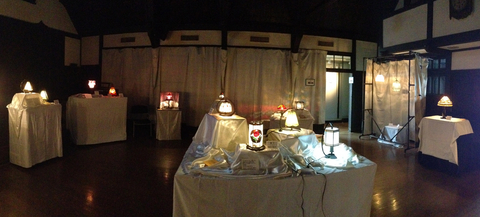 このランプ類のほか、廊下のステンドグラスパネル、そのほか50点ほどの作品が並んでいますので、ゆっくりご覧ください。