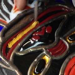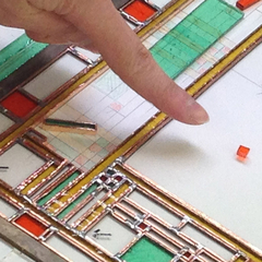 下の写真は、いま、「ステンドグラス グループ びどりを 第34回 作品展」 に展示中の作品の制作中の一部分の写真です。