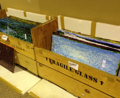 右の写真のような、パーテーション システムなどを使って、型板ガラスでおしゃれなステンドグラスを?