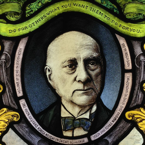 「ヘボン博士は医師であり宣教師。1863年ヘボン塾開校。これが明治学院大学のはじまり。ヘボン式ローマ字、和英・英和辞書、聖書の日本語訳など功績は大きい」