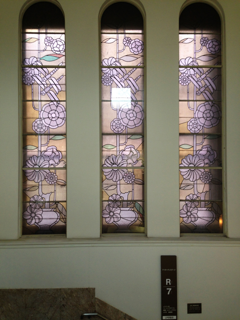伊勢丹の本館の7階から屋上庭園に出る、第二号階段の途中にあるステンドグラスを見に行きました。