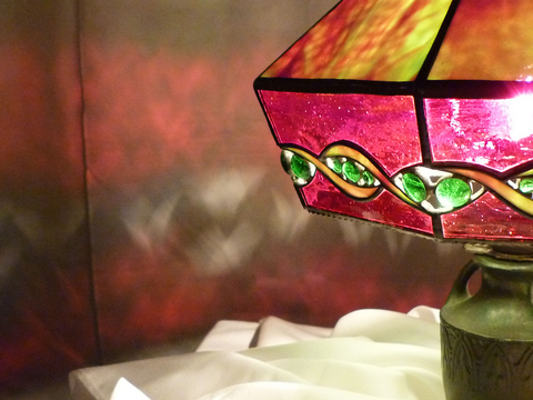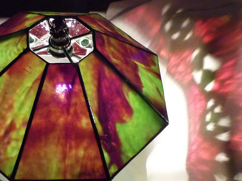 そこで、暖か〜い、赤とグリーンのランプをご紹介します。 (「ステンドグラスグループ びどりを 第34回作品展」 出展作)
