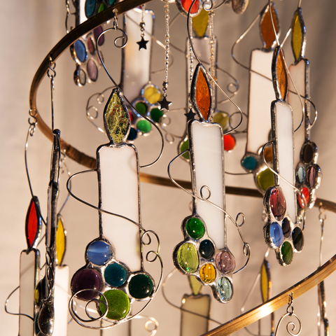 28個のステンドグラスのキャンドルが下がって、クリスマスツリーが出来ました。