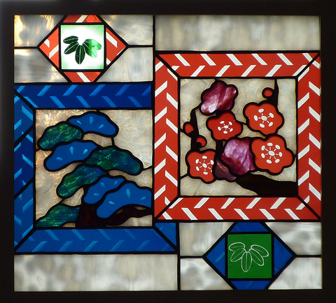松竹梅のパネル、改めて「吉祥の窓」と名付けました。