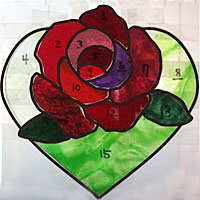 花びらの一つひとつに色々なガラスを使ったステンドグラスです。