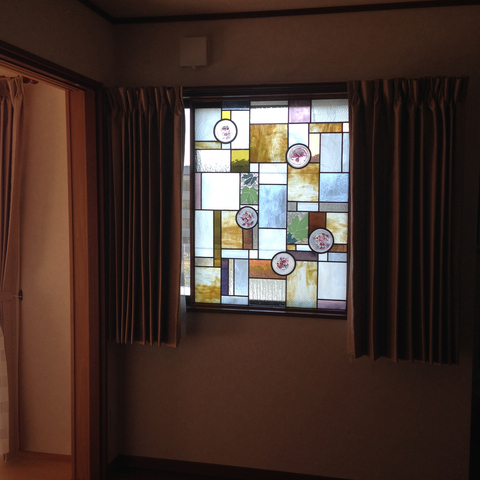 仮眠の後、窓にステンドグラスを取り付けてきました。
