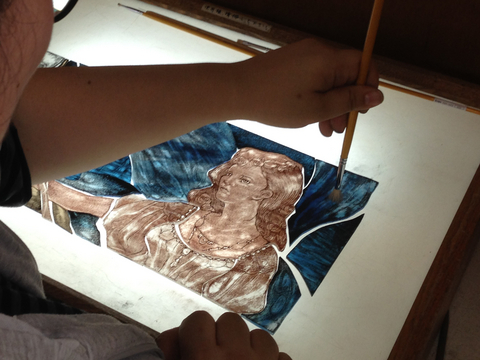 グリザイユを塗ったあと、シェイディング(陰影つけ)をはじめたところ。