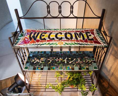 下の段に “みきデザイン工房” とガラスで描いたモザイク