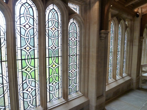 ここの廊下に、シンプルで素敵なステンドグラスがありました。