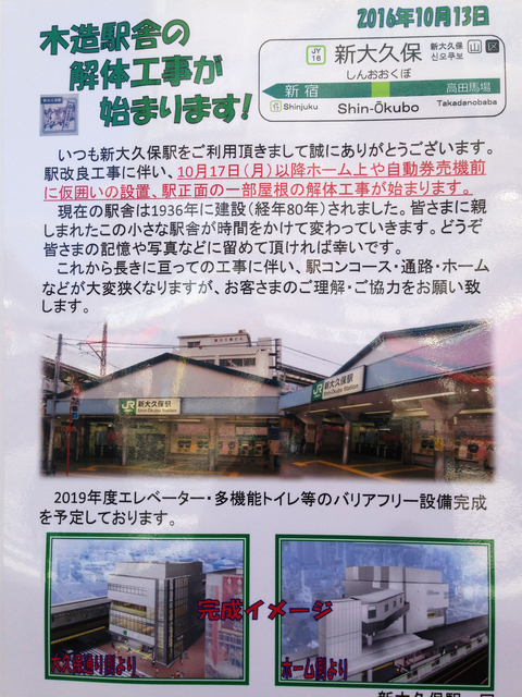 先日より、新大久保駅が工事中のため、階段や改札が込み合って通りにくくなっています。