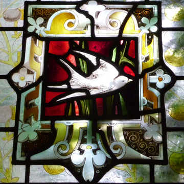 下の写真は、その向かい側にあったステンドグラスです。