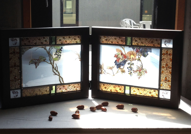 そこに展示したらぴったりだな〜、と思ったステンドグラスの屏風です。