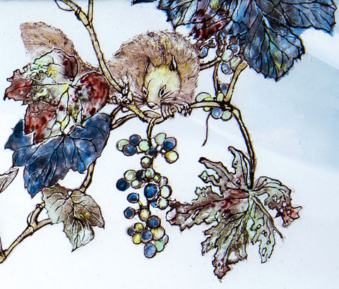 ずいぶん前から東京国立博物館東洋館で見た韓国の漆器に描かれていたリスと野葡萄の絵を描いてみたいと思っておりました。今回、明治の画工のリスと野葡萄の絵を見て、Gペンで描いてみました。なんとなく気に入ったと言ってくださる方がいらっしゃたりして、うれしいです。