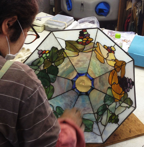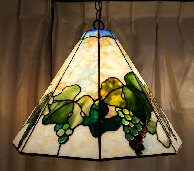 ステンドグラスのモチーフの定番 「ぶどう」 のランプをご紹介します。