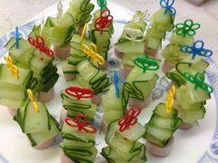 それから・・・ 早い時間から高橋講師が 「きゅうりのXmasツリー」 作り。