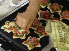 高橋講師の星形のルッコラと生ハムのピザトースト。