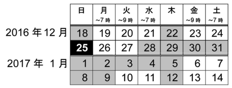 2017年 年始は、1月6日(金)より営業いたしますので、