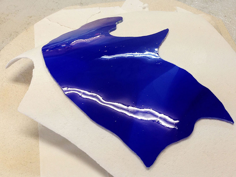 窯に入れ、型の上でスランピング(凹凸に合わせて曲げる)させます。