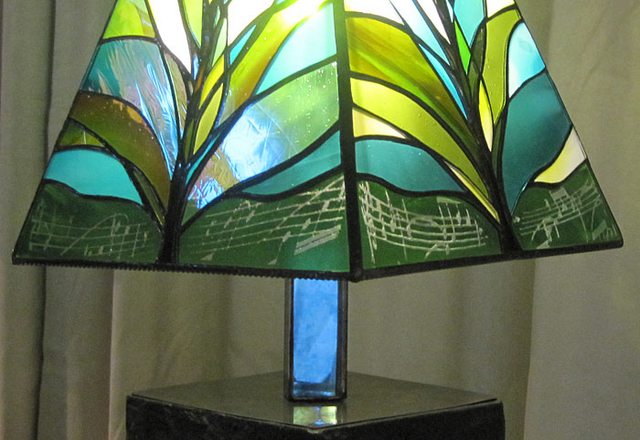 ランプの裾周りに、サンドブラストで楽譜を描きました。