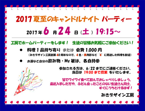 今年は、久しぶりに 【夏至のキャンドルナイト パーティー】 です!