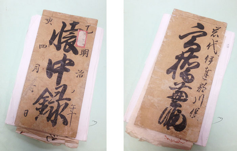 旅先で和紙に筆で書き糸で綴じた旅日記を本にしたものです。