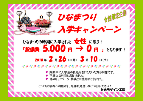 「ひなまつり 入学キャンペーン」 をはじめます。