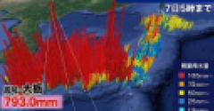 四国地方で1,800ミリ (6/28〜7/8の総降水量)