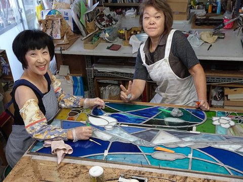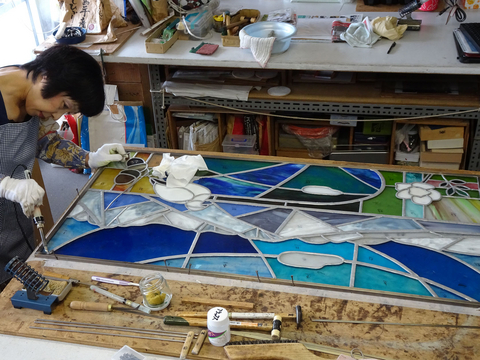 今日は、ステンドグラスパネルの周囲に、チャンネル (コの字の真鍮)