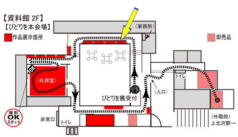 下の見取り図の、黄色い矢印のところに展示していた作品です。