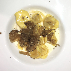 美味しそ〜!!!!!しかも、ラビオリ風パスタの上に乗っているのは、白トリュフではないですか?メインは牛タンかな?アンティパストも種類が多いくてワインが進みそう。ドルチェの写真も見たかったです。どなたかアップして下さい。1年半ぶりの風邪がこのタイミングなんて、自分を呪うとともに直前のキャンセルで申し訳ございませんでした。