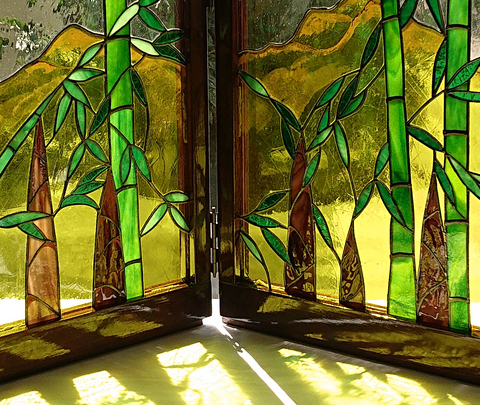 竹林に居るような気分になれる、ステンドグラスの屏風をご紹介します。