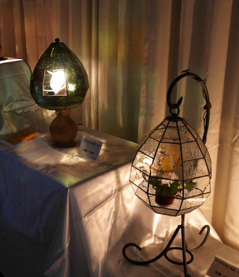 展覧会会場で、ランプとテラリウムを並べて展示していました。