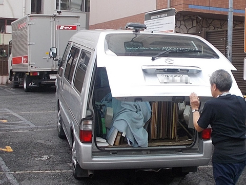 作品のほか、倉庫に保管してある設営用の備品や展示台・展示用品などを積み込み、2台ともパンパンです。