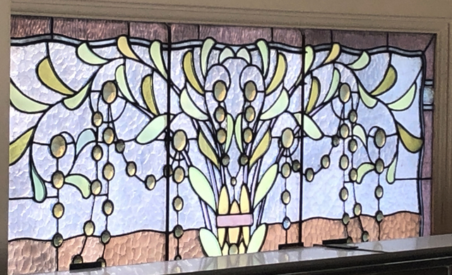 下の写真は、2階の展示キャビネの上にあったステンドグラス。
