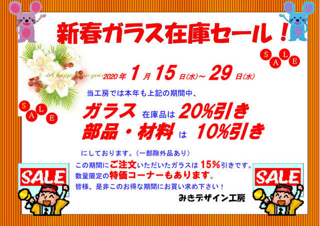 新春 ガラス・部材 セール 2020.1.15 (水)〜29(水)
