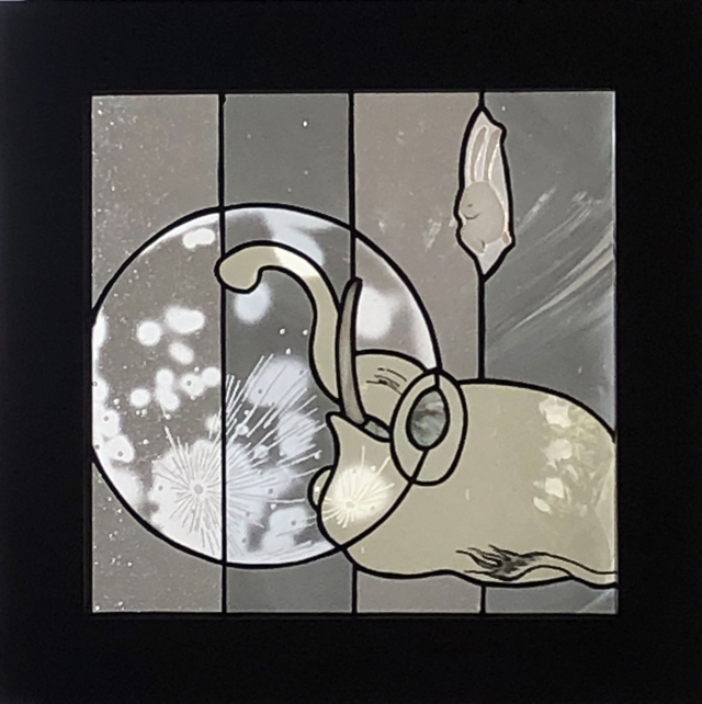 「月を愛でる」 ステンドグラスパネル
