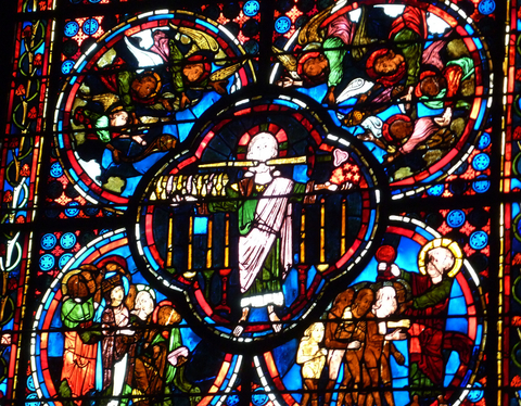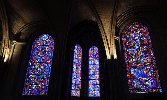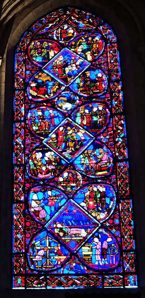 これだけの13Cのステンドグラスがよい状態で残されているのは、フランスの修復技術の高さを示しています。