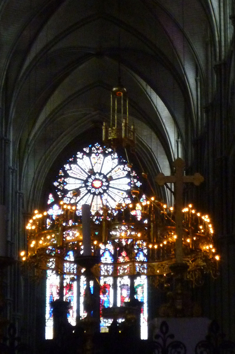 ブールジュ大聖堂 -4  の写真を見ると、シャンデリアが一つしかないのがわかります。