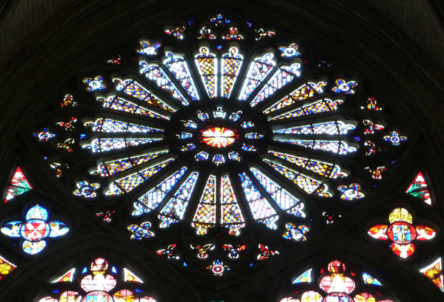 次は、ファサードの上のバラ窓。