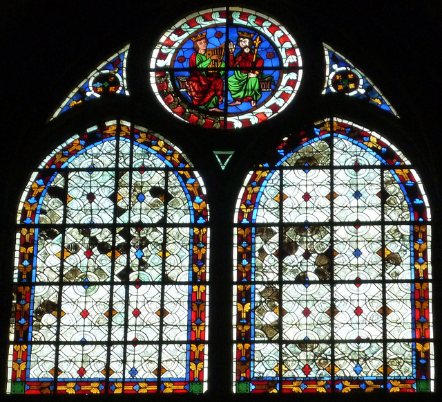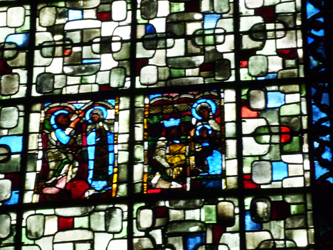 上のステンドグラスは、修復前のステンドグラスなのでは?